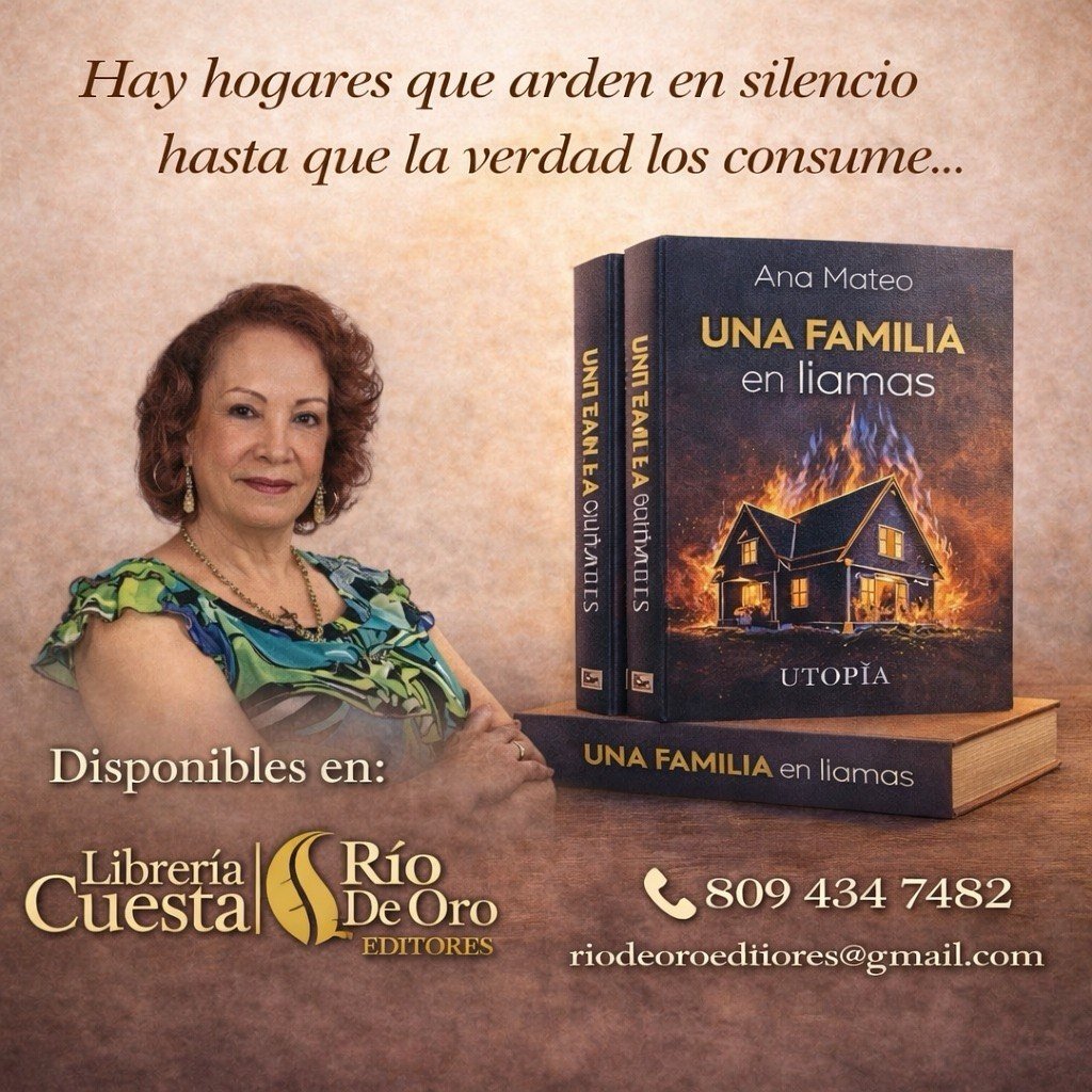 La escritora dominicana Ana Mateo pone a disposición del público tres títulos que profundizan en las emociones humanas, los conflictos familiares y las historias que habitan en el silencio: La Última Carcajada, Una familia en llamas y Petronila. Estas obras ya se encuentran disponibles para la venta en Librería Cuesta, la librería más importante de Santo Domingo, bajo la representación de Río de Oro Editores, entidad que ha fortalecido su labor como distribuidora y representante de autores en la República Dominicana.